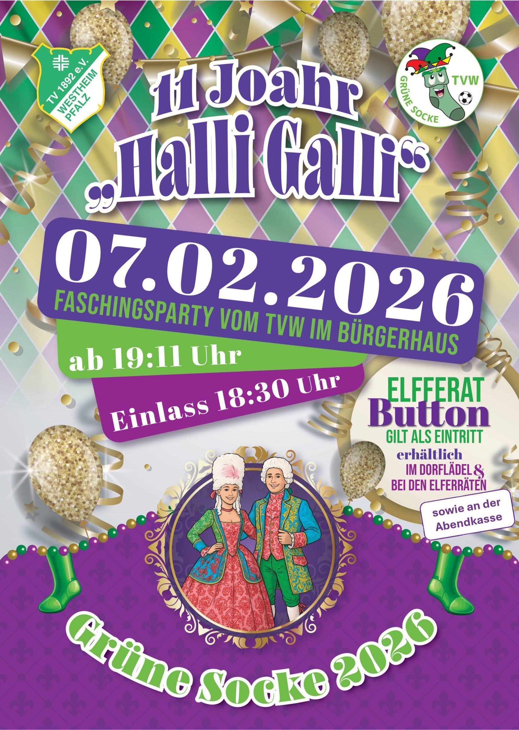 Schnappt euch eure beste Laune und feiert mit der Grünen Socke und den TVW – Helau und Gute-Laune garantiert!