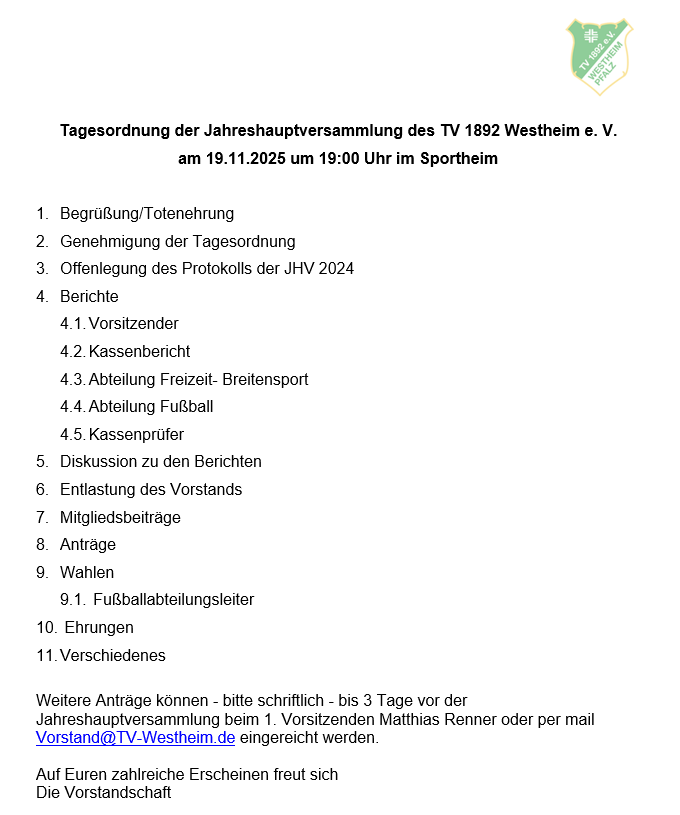 Aktuelles vom TV 1892 Westheim e.V.