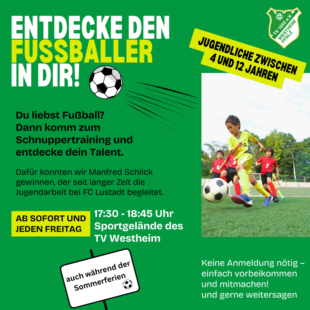 ab diesem Freitag haben junge (angehende) Fußballspieler die Möglichkeit, sich während unserer Schnupperstunde auszuprobieren!