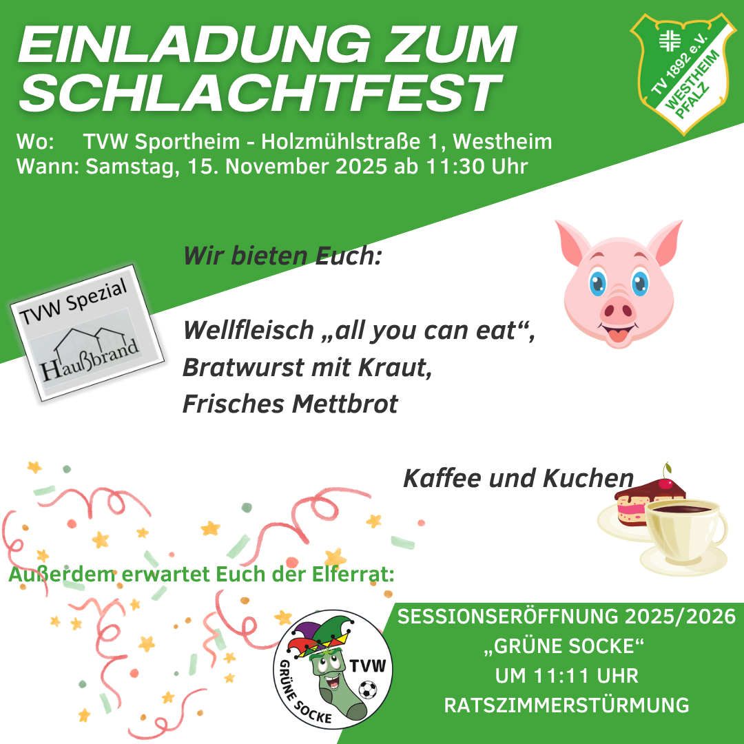 Wir erwarten Euch am Samstag, 15. November ab 11:30 Uhr im TVW Sportheim.
